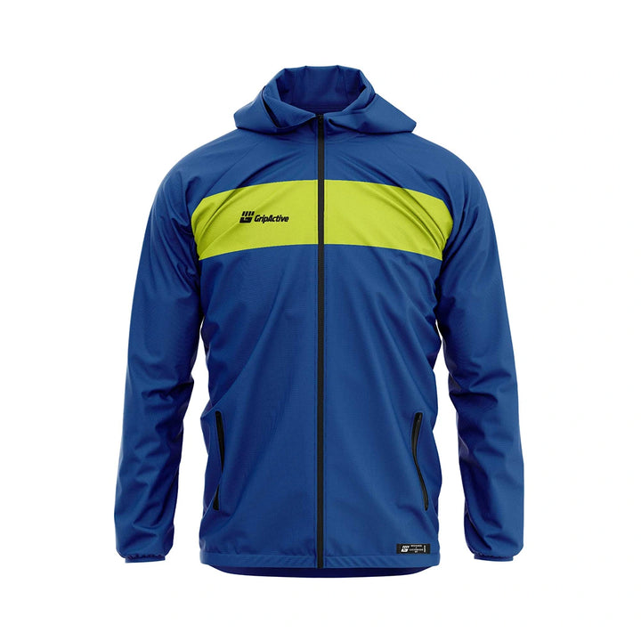 This breathable football rain jacket features side stoppers and adjustable cuffs to block out wind and water. Great for players who need flexible coverage without overheating—complete with full-length zip and custom colours.