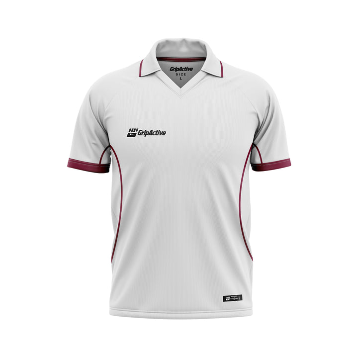 The Half Sleeve white jersey is designed for UK cricket players needing lightweight, breathable comfort. Unisex sizes ensure the perfect fit. Features coloured lined stripes across the chest for a modern look. Customise with Grip Active logo and your name. Own your team kit—shirts and shorts available at club shops now!